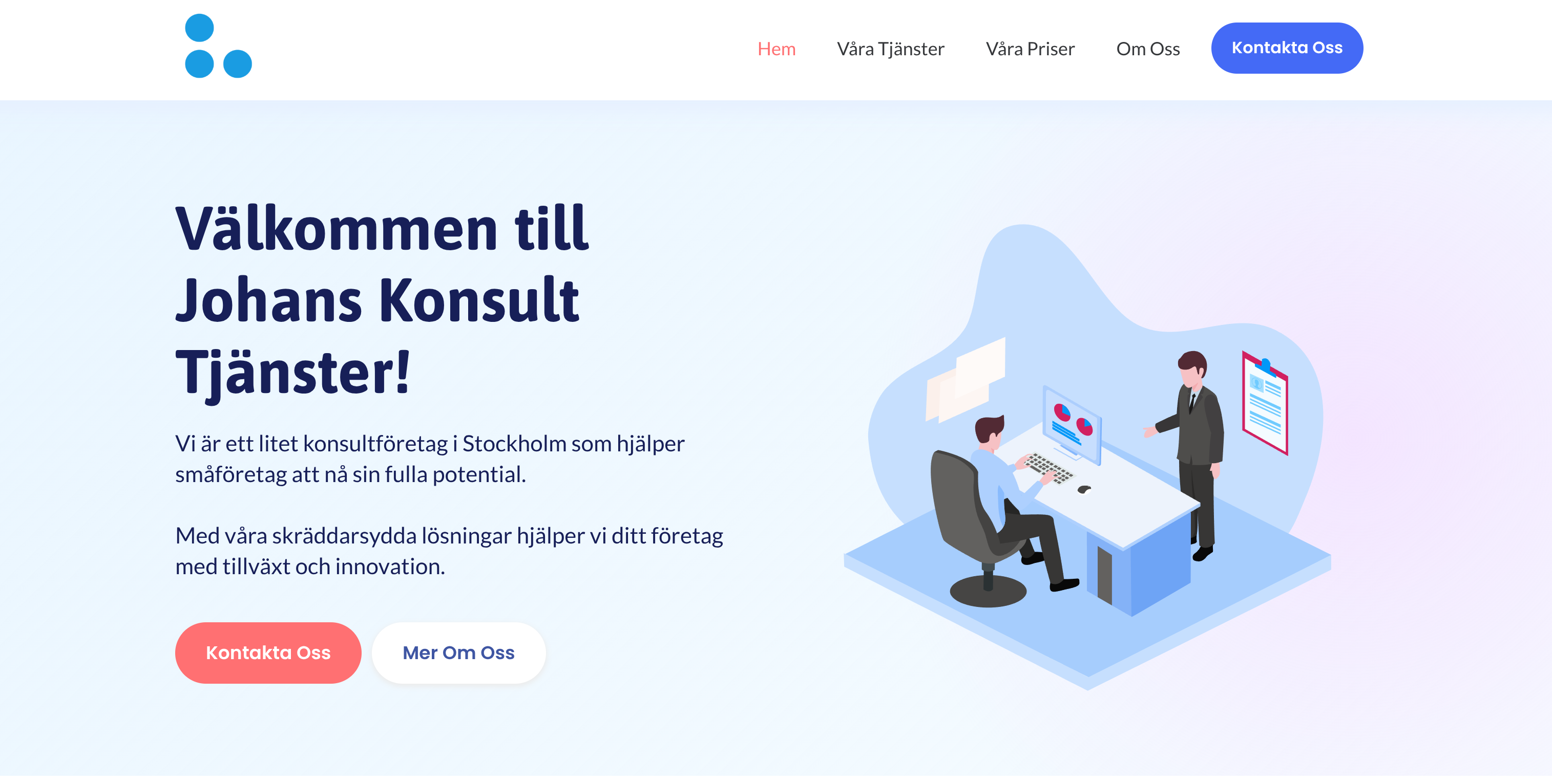 Om du inte har egna bilder och texter, så hjälper vi dig med att skriva texten till er nya hemsida, samt använder bilder från vårt bibliotek.